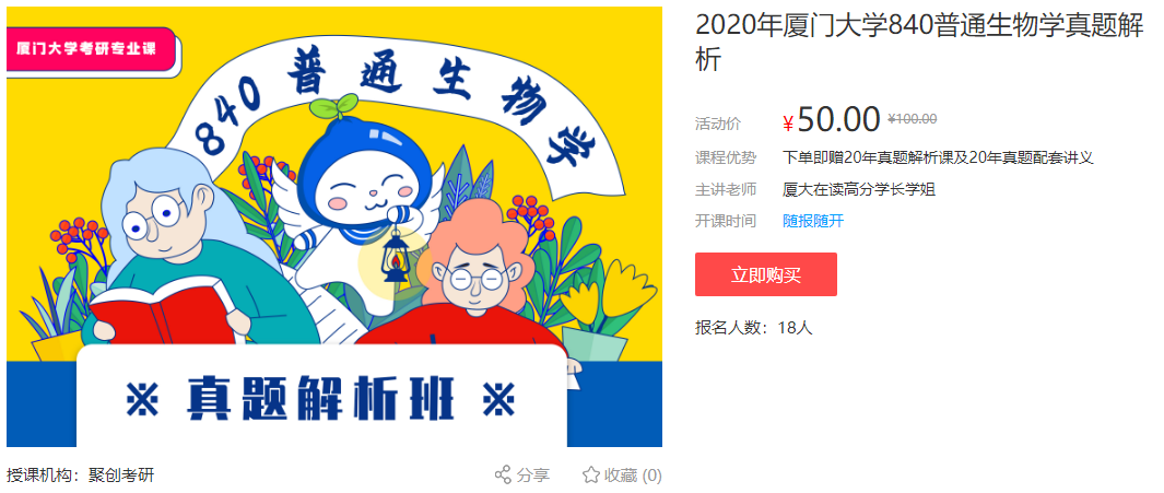 考研复习中,专业课占的分值较大。报考院校专业的考研专业课真题是专业课复习中必不可少的资料。聚创考研网小编为大家推荐2020年厦门大学840普通生物学考研专业课真题及答案解析,该解析课程由厦门大学在读高分学长学姐为大家整理,解析内容包含20年专业课真题的考试难度、考试题型、试题分析。