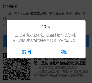 ● 其他网上确认需要的材料,请按报考点规定上传,确保清晰,如没有可不上传,最后确认无误提交后,等待报考点审核网上确认信息。