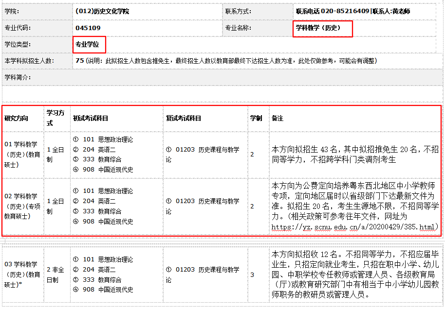 备注:华南师范大学学科教学(历史)全日制不招同等学力和跨学科门类调剂考生。