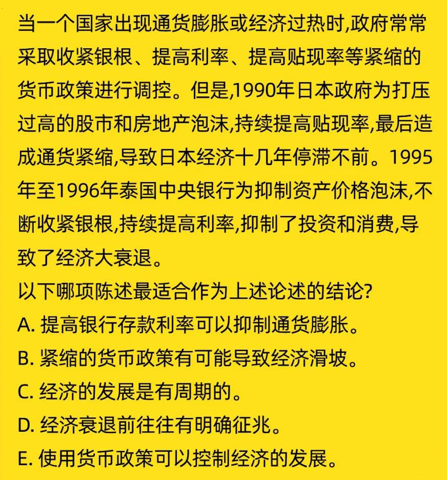以上是聚创考研网为考生整理的"2021年管理类考研:逻辑部分-通货膨胀或经济过热处理方式判断Part.179"的相关考研信息,希望对大家考研备考有所帮助! 备考过程中如有疑问,也可以添加老师微信juchuang911进行咨询。