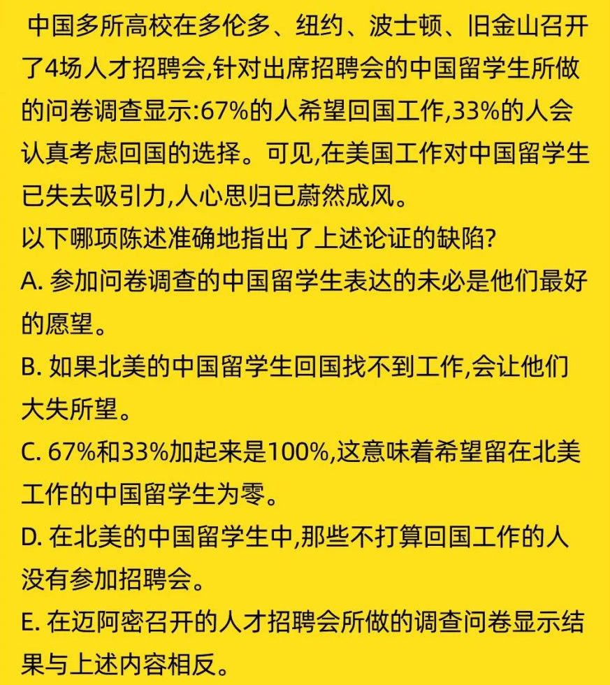 以上是聚创考研网为考生整理的"2021年管理类考研:逻辑部分-人才招聘会问卷调查推论判断Part.181"的相关考研信息,希望对大家考研备考有所帮助! 备考过程中如有疑问,也可以添加老师微信juchuang911进行咨询。