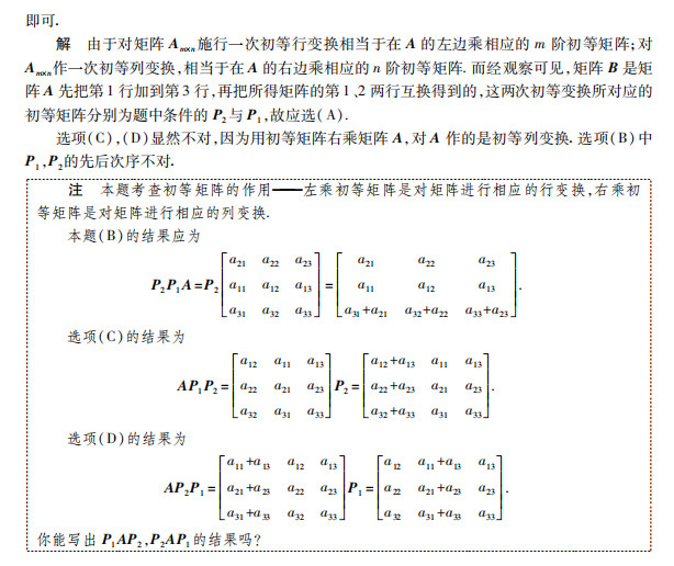 以上是聚创考研网为考生整理的"2021年考研数学:初等变换和初等矩阵的关系Part.232"的相关考研信息,希望对大家考研备考有所帮助! 备考过程中如有疑问,也可以添加老师微信juchuang911进行咨询。