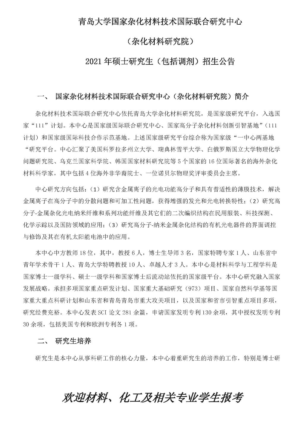 2021年 青岛科技大学材料学、物理化学、无机化学等专业招生调剂信息