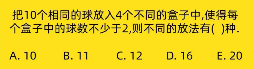 以上是聚创考研网为考生整理的"2021年管理类考研:数学部分-10个球放入4个盒子的放法又多少个Part.190"的相关考研信息,希望对大家考研备考有所帮助! 备考过程中如有疑问,也可以添加老师微信juchuang911进行咨询。