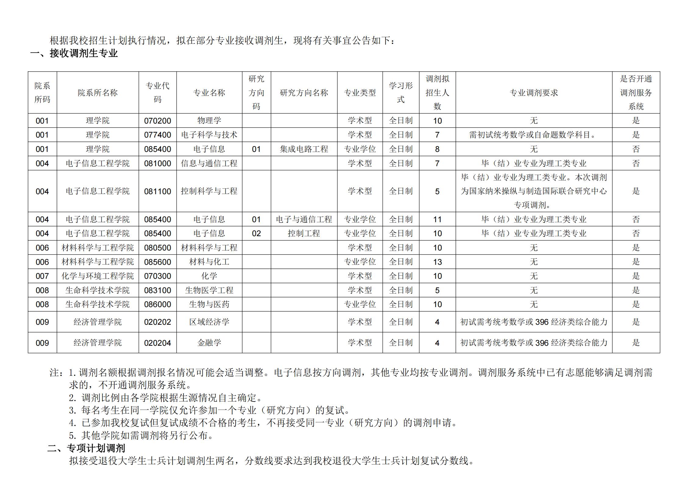 1. 拟调剂学科、调剂人数将根据第一志愿复试情况随时调整,最终调剂相关信息4月1日正式发布。