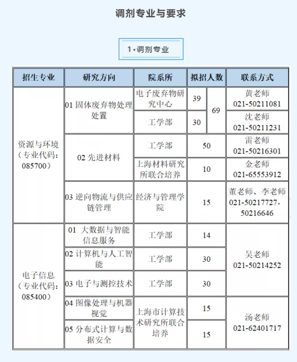 以上是聚创考研网为考生整理的"【上海市】2021年考研各院校调剂信息汇总"的相关考研信息,希望对大家考研备考有所帮助! 备考过程中如有疑问,也可以添加老师微信juchuang911进行咨询。