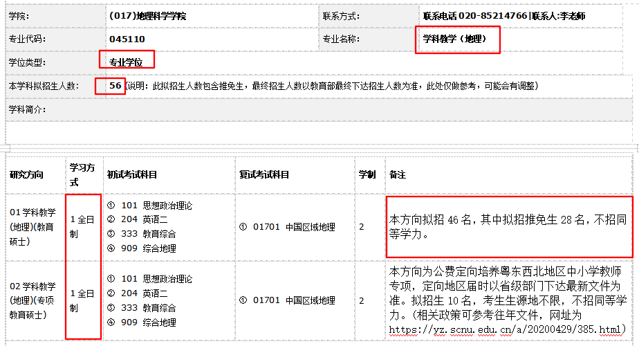 ③值得一提的是,华南师大学科教学(地理)在20考研只招了全日制,没有招非全日制的考生,因而可以看到,20考研在录取人数上也增加了不少;在21考研的招生目录里,21考研学科教学(地理)依旧只招全日制;