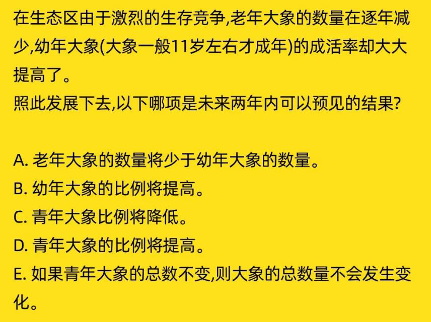 以上是聚创考研网为考生整理的"2021年管理类考研:逻辑部分-大象未来两年内可以预见的结果判断Part.204"的相关考研信息,希望对大家考研备考有所帮助! 备考过程中如有疑问,也可以添加老师微信juchuang911进行咨询。