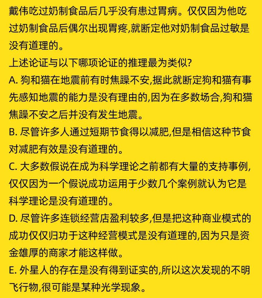 以上是聚创考研网为考生整理的"2021年管理类考研:逻辑部分-判断类似推理论证的选项Part.209"的相关考研信息,希望对大家考研备考有所帮助! 备考过程中如有疑问,也可以添加老师微信juchuang911进行咨询。