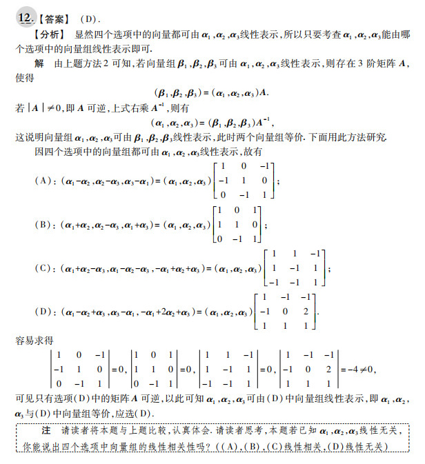 以上是聚创考研网为考生整理的"2022年考研数学:判断向量组等价关系式Part.2"的相关考研信息,希望对大家考研备考有所帮助! 备考过程中如有疑问,也可以添加老师微信juchuang911进行咨询。