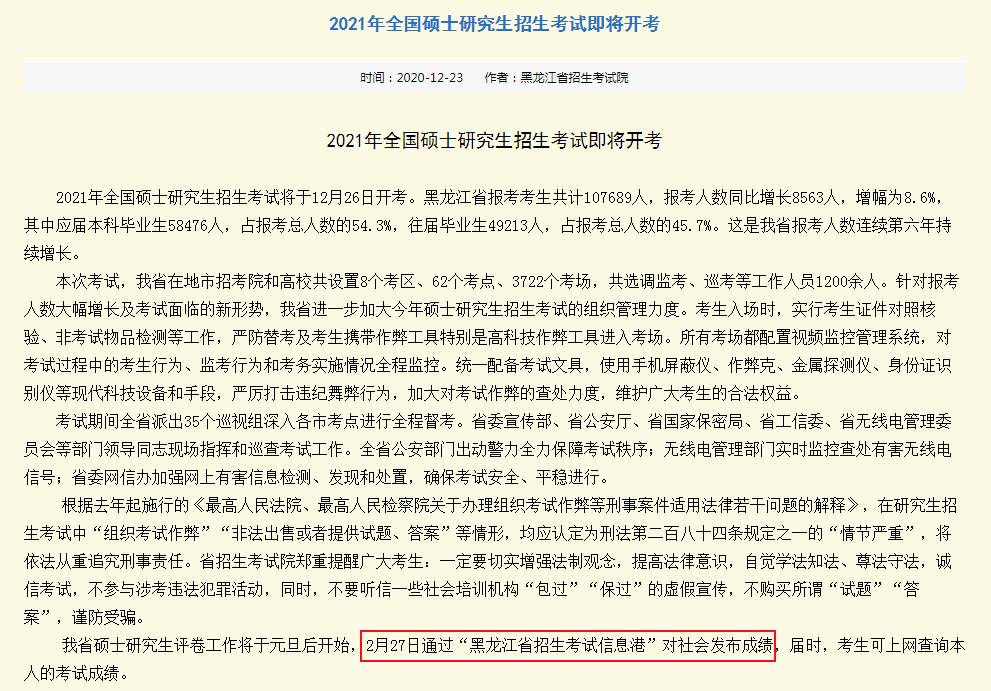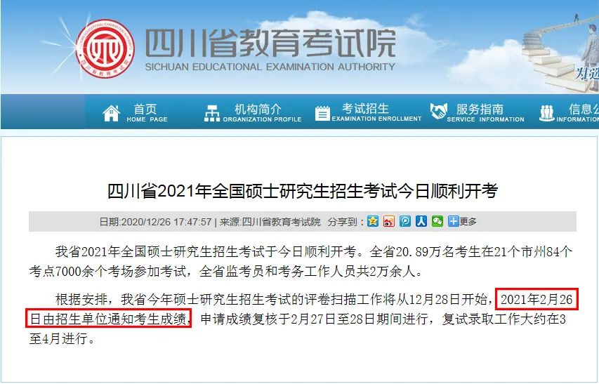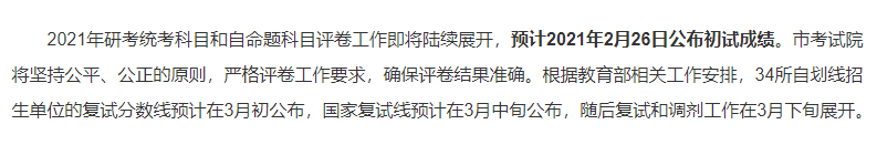 注:受疫情防控影响,2021考研初试成绩查询时间如有变动,以省级教育招生考试机构公布的最新信息为准。
