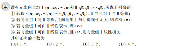以上是聚创考研网为考生整理的"2022年考研数学:n维向量组判断命题成立个数Part.4"的相关考研信息,希望对大家考研备考有所帮助! 备考过程中如有疑问,也可以添加老师微信juchuang911进行咨询。