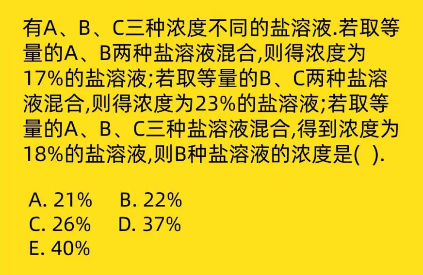 以上是聚创考研网为考生整理的"2022年管理类考研:数学部分-求B种盐溶液的浓度Part.4"的相关考研信息,希望对大家考研备考有所帮助! 备考过程中如有疑问,也可以添加老师微信juchuang911进行咨询。