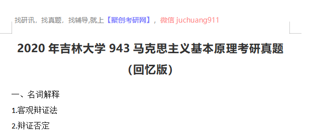 完整版请下载附件:2020年吉林大学943马克思主义基本原理考研真题(回忆版)