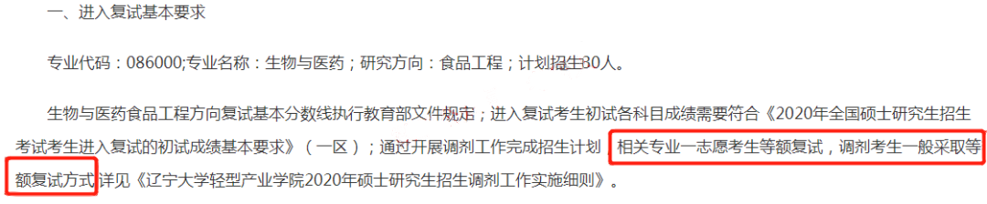 (2)轻型产业学院生物与医药食品工程方向一志愿考生采用等额复试,调剂考生一般采取等额复试方式。