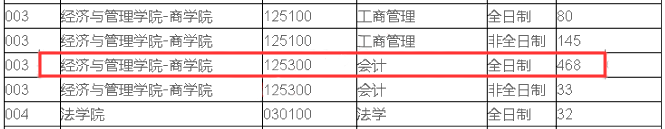 新疆大学全日制会计专硕去年有大量调剂名额,根据其官网提供的2020复试名单来看,进入复试356人,而招生人数是468人,就意味着进入复试100%录取,还余下112个调剂名额。