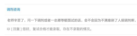 “等额复试”虽然出现被刷的几率比较小,但并不是说百分之百绝对被录取。去年就出现不少被刷的情况。