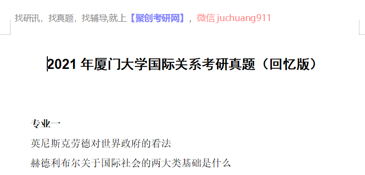 完整版请下载附件:2021年厦门大学858+630国际关系考研真题(回忆版)