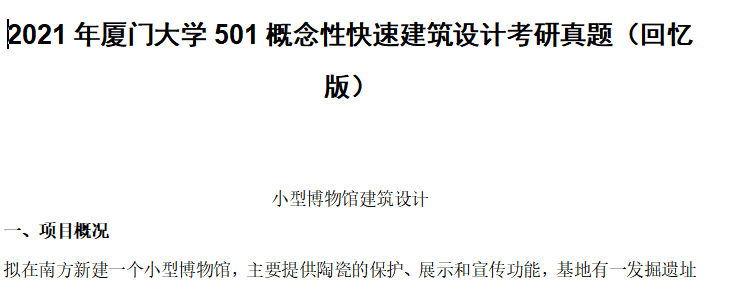 完整版请下载附件:2021年厦门大学501概念性快速建筑设计考研真题(回忆版)