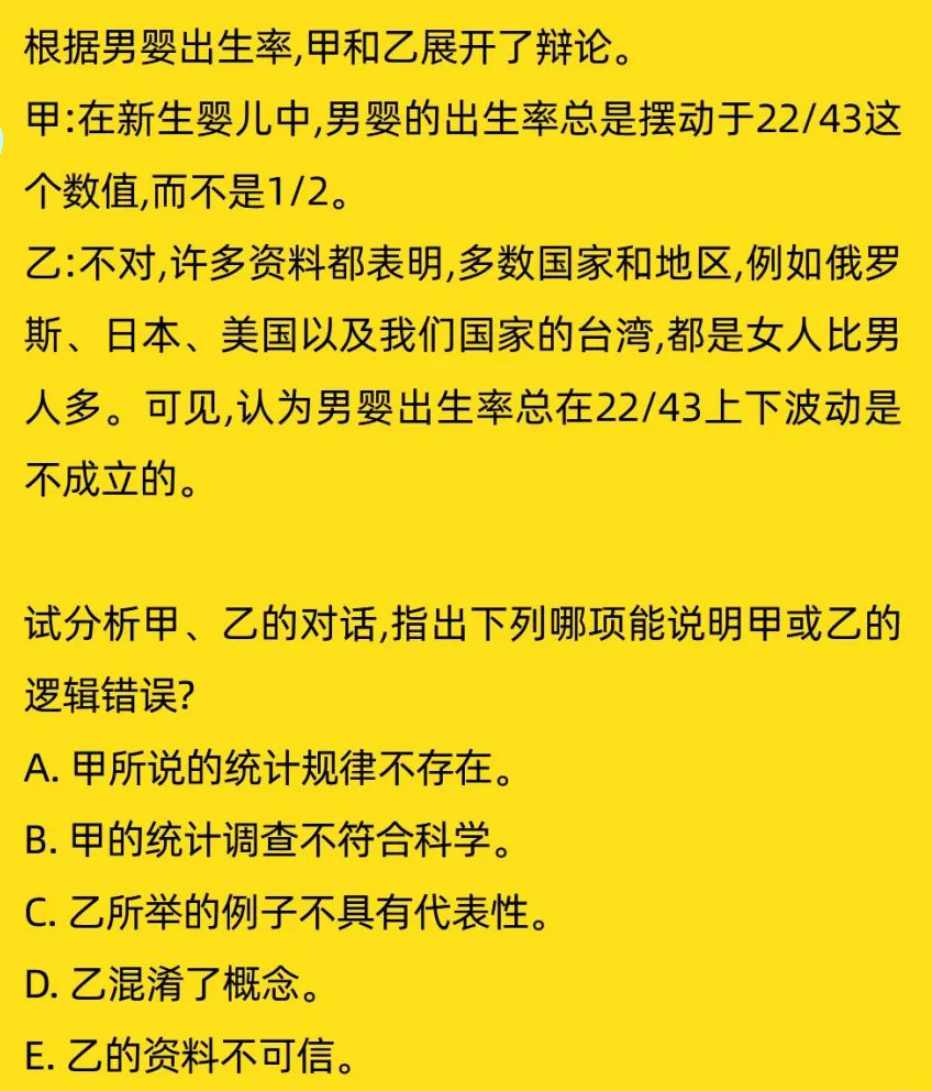 以上是聚创考研网为考生整理的"2022年管理类考研:逻辑部分-男婴出生率辩论逻辑判断Part.29"的相关考研信息,希望对大家考研备考有所帮助! 备考过程中如有疑问,也可以添加老师微信juchuang911进行咨询。