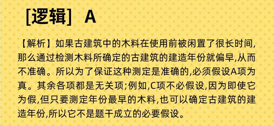 以上是聚创考研网为考生整理的"2022年管理类考研:逻辑部分-古建筑建造年份逻辑判断Part.31"的相关考研信息,希望对大家考研备考有所帮助! 备考过程中如有疑问,也可以添加老师微信juchuang911进行咨询。