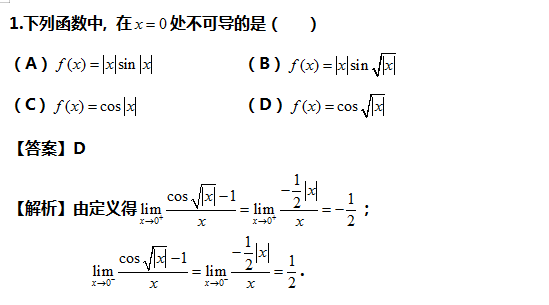以上是聚创考研网为考生整理的"2022年考研数学:判断在x=0处不可导的函数Part.39"的相关考研信息,希望对大家考研备考有所帮助! 备考过程中如有疑问,也可以添加老师微信juchuang911进行咨询。