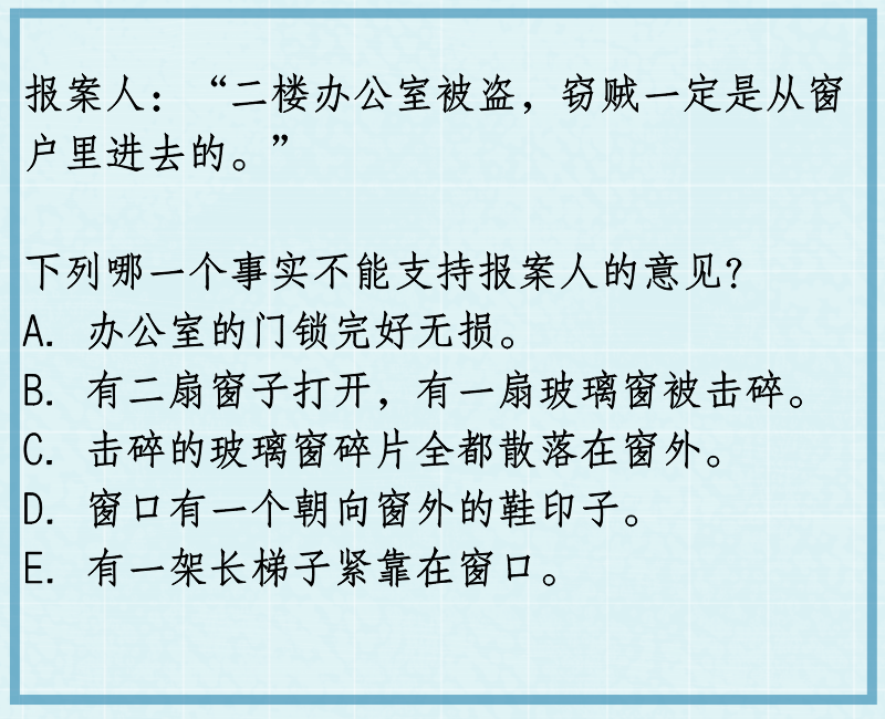 以上是聚创考研网为考生整理的"2022年管理类考研:逻辑部分-哪个事实不能支持报案人的意见Part.41"的相关考研信息,希望对大家考研备考有所帮助! 备考过程中如有疑问,也可以添加老师微信juchuang911进行咨询。