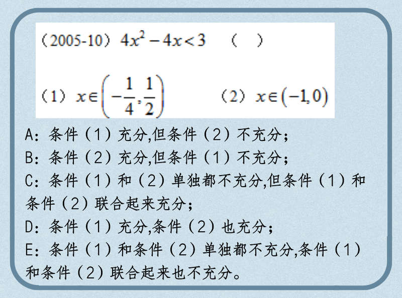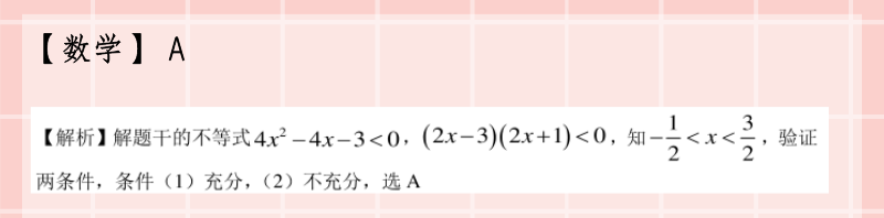 以上是聚创考研网为考生整理的"2022年管理类考研:数学部分-不等式条件判断Part.44"的相关考研信息,希望对大家考研备考有所帮助! 备考过程中如有疑问,也可以添加老师微信juchuang911进行咨询。