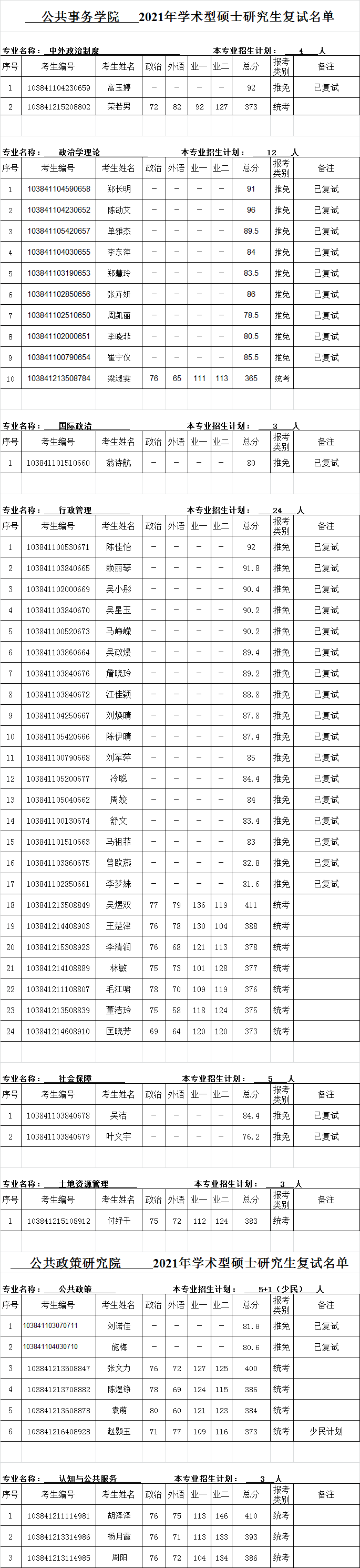 以上是聚创考研网为考生整理的"厦门大学公共事务学院、公共政策研究院2021年学术型研究生硕士复试名单(公示)"的相关考研信息,希望对大家考研备考有所帮助!