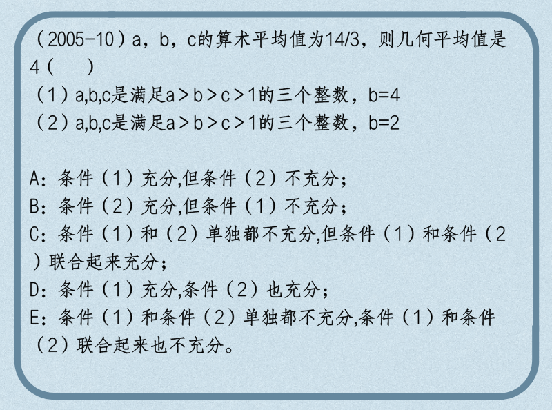 以上是聚创考研网为考生整理的"2022年管理类考研:数学部分-几何平均值Part.66"的相关考研信息,希望对大家考研备考有所帮助! 备考过程中如有疑问,也可以添加老师微信juchuang911进行咨询。