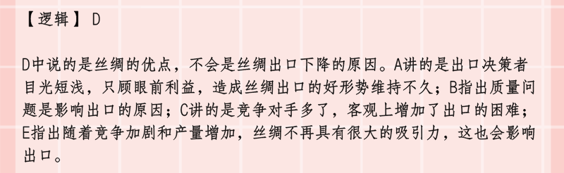 以上是聚创考研网为考生整理的"2022年管理类考研:逻辑部分-造成材料中丝绸现象原因判断Part.67"的相关考研信息,希望对大家考研备考有所帮助! 备考过程中如有疑问,也可以添加老师微信juchuang911进行咨询。
