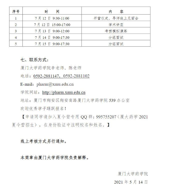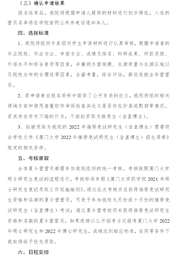 以上是聚创考研网为考生整理的"厦门大学药学院2021年夏令营报名指南"的相关考研信息,希望对大家考研备考有所帮助! 备考过程中如有疑问,也可以添加老师微信juchuang911进行咨询。