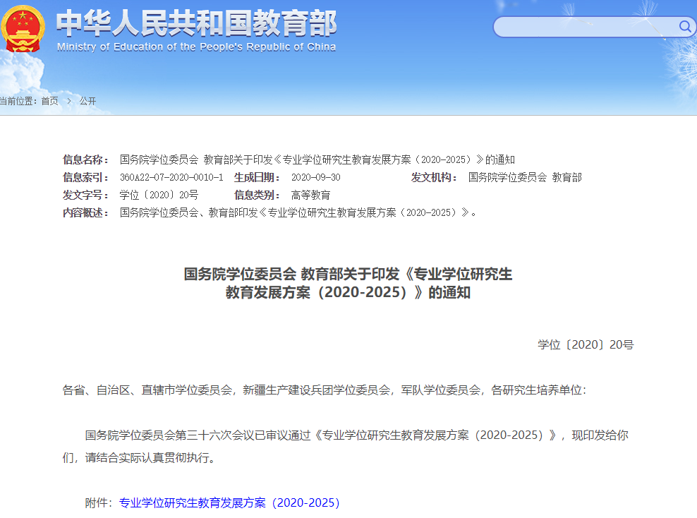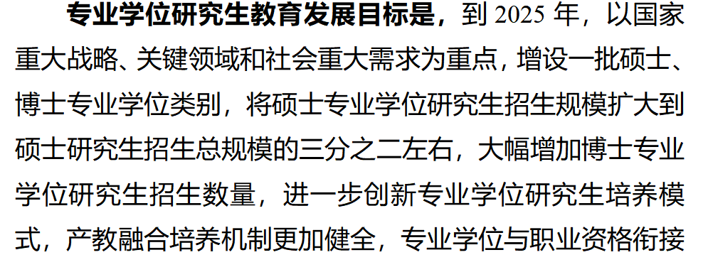 教育部发布公告:2020-2025年时间内专硕的招生人数要达到所有研究生招生人数的2/3。