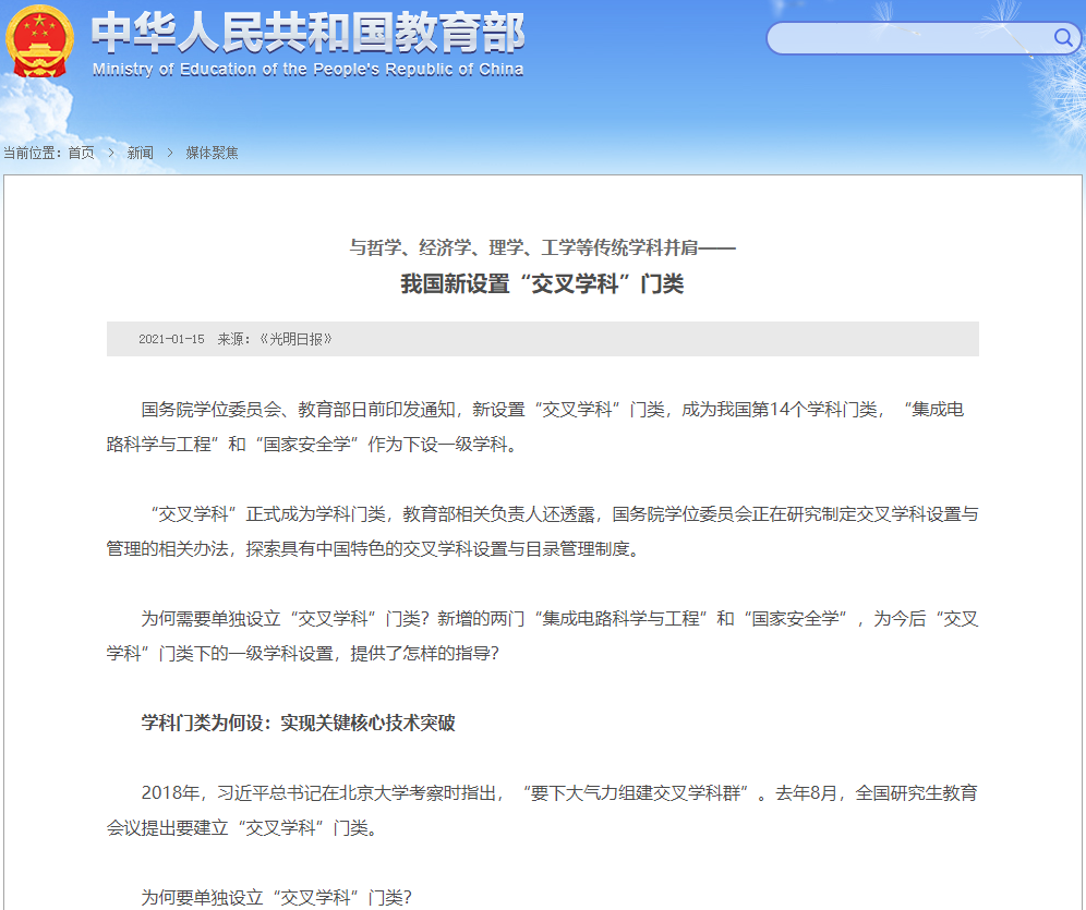 交叉学科是指不同学科之间相互交叉、融合、渗透而出现的新兴学科。目前,交叉学科开设数量已经突破500个,其中“双一流”院校占比大。