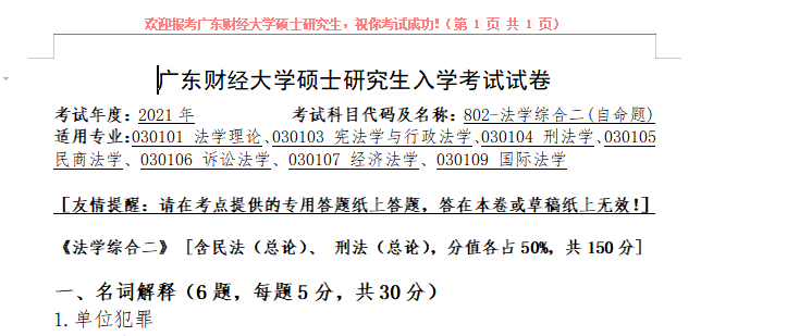 以上是聚创考研网为考生整理的"2021年广东财经大学802法学综合二(自命题) 考研真题"的相关考研信息,希望对大家考研备考有所帮助! 备考过程中如有疑问,也可以添加老师微信juchuang911进行咨询。