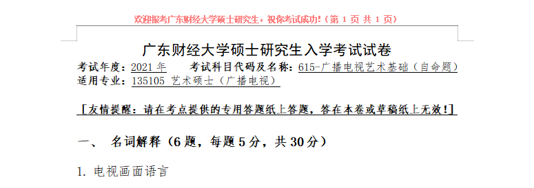完整版请下载附件:2021年广东财经大学615广播电视艺术基础(自命题)考研真题