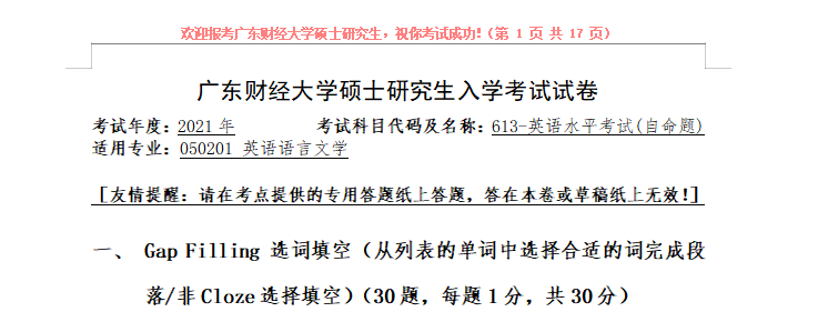 完整版请下载附件:2021年广东财经大学613英语水平考试(自命题)考研真题
