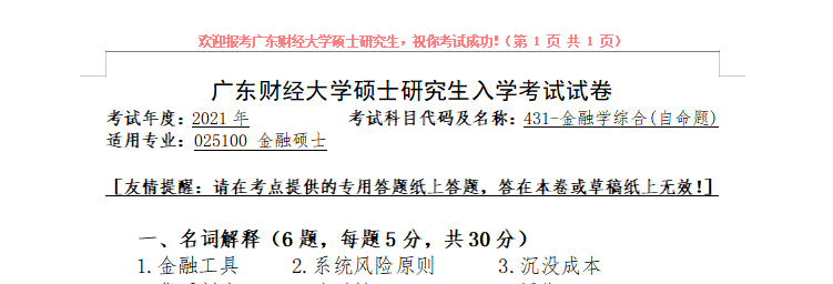 完整版请下载附件:2021年广东财经大学431金融学综合(自命题)考研真题