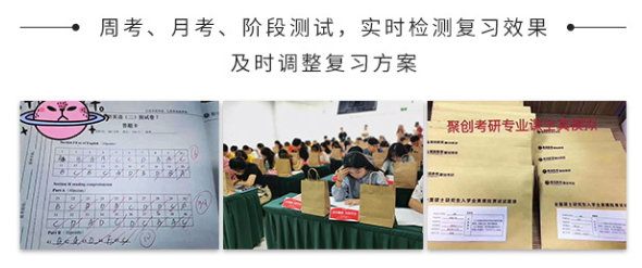 聚创二战集训营在这里有强大的师资团队、高三式封闭学习的氛围和环境。从客观和主观原因入手,帮你明确考研目的,选择适合你的学校与专业,纠正复习备考方法。定期模拟测试避免盲目自信,阶段科目重点突破。还有老师为你做好心态调整,考研过程必定事半功倍。