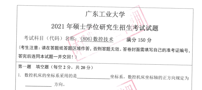 考研学习中,专业课占的分值较大。报考院校专业的考研专业课真题是专业课复习中必不可少的资料。聚创广东工业大学考研陈老师为大家整理了2021年广东工业大学806数控技术考研真题(完整版),并且可以提供广东工业大学考研专业课辅导,希望更多考生能够在专业课上赢得高分,升入理想的院校。