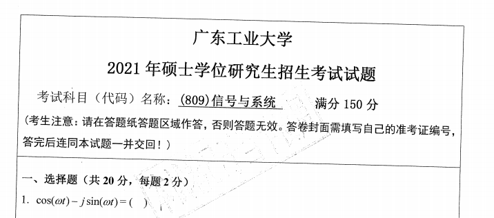 完整版请下载附件:2021年广东工业大学809信号与系统(自动化学院)考研真题(完整版)