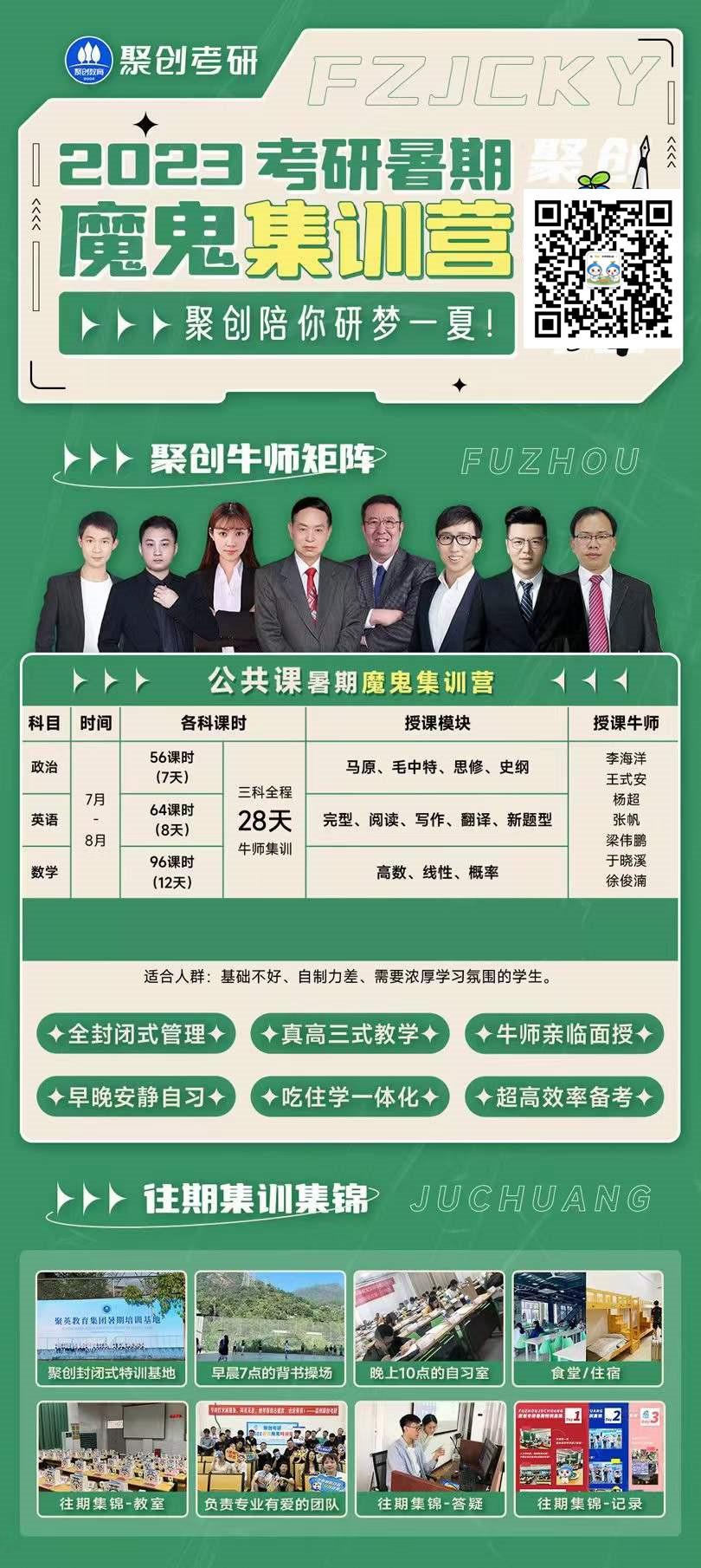 以上是聚创考研网为考生整理的"2023考研:得暑假者得考研!这个暑假你是怎么备考的呢?"的相关考研信息,希望对大家考研备考有所帮助! 备考过程中如有疑问,也可以添加老师微信juchuang911进行咨询。