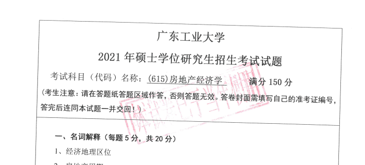 考研学习中,专业课占的分值较大。报考院校专业的考研专业课真题是专业课复习中必不可少的资料。聚创广东工业大学考研陈老师为大家整理了2021年广东工业大学(615)房地产经济学(报考方向1必须选考)考研真题(完整版),并且可以提供广东工业大学考研专业课辅导,希望更多考生能够在专业课上赢得高分,升入理想的院校。