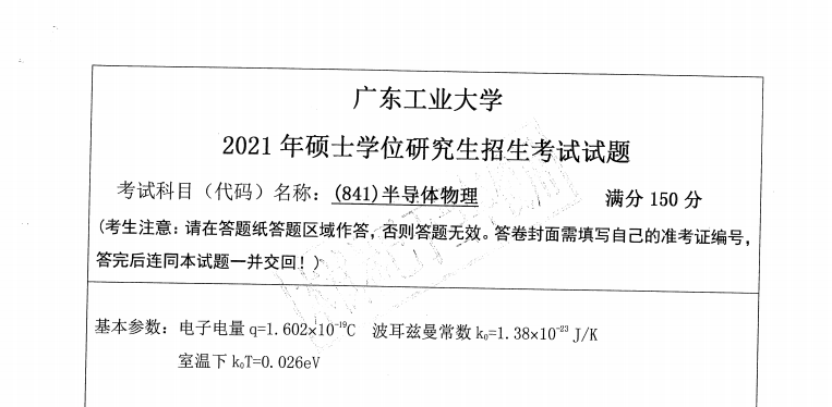 完整版请下载附件:2021年广东工业大学(841)半导体物理考研真题(完整版)