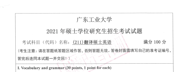 考研学习中,专业课占的分值较大。报考院校专业的考研专业课真题是专业课复习中必不可少的资料。聚创广东工业大学考研陈老师为大家整理了2021年广东工业大学(211)翻译硕士英语考研真题(完整版),并且可以提供广东工业大学考研专业课辅导,希望更多考生能够在专业课上赢得高分,升入理想的院校。