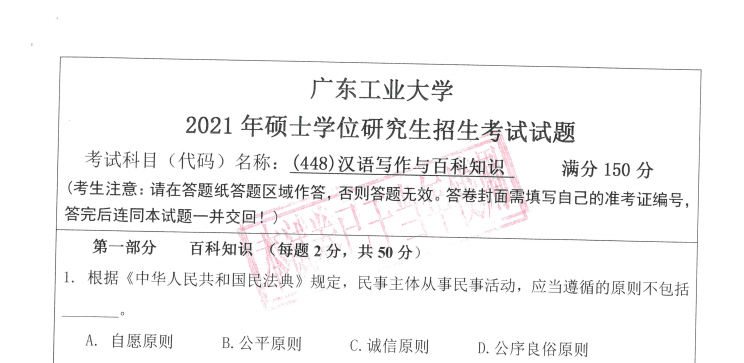 完整版请下载附件:2021年广东工业大学(448)汉语写作与百科知识考研真题(完整版)