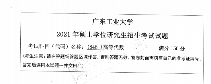 以上是聚创考研网为考生整理的"2021年广东工业大学(846)高等代数考研真题(完整版)"的相关考研信息,希望对大家考研备考有所帮助! 备考过程中如有疑问,也可以添加老师微信juchuang911进行咨询。