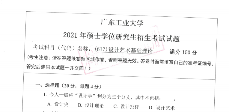 完整版请下载附件:2021年广东工业大学(617)设计艺术基础理论考研真题(完整版)
