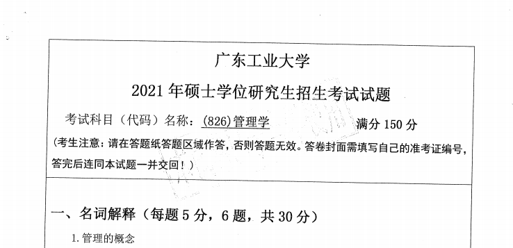 完整版请下载附件:2021年广东工业大学(826)管理学原理考研真题(完整版)