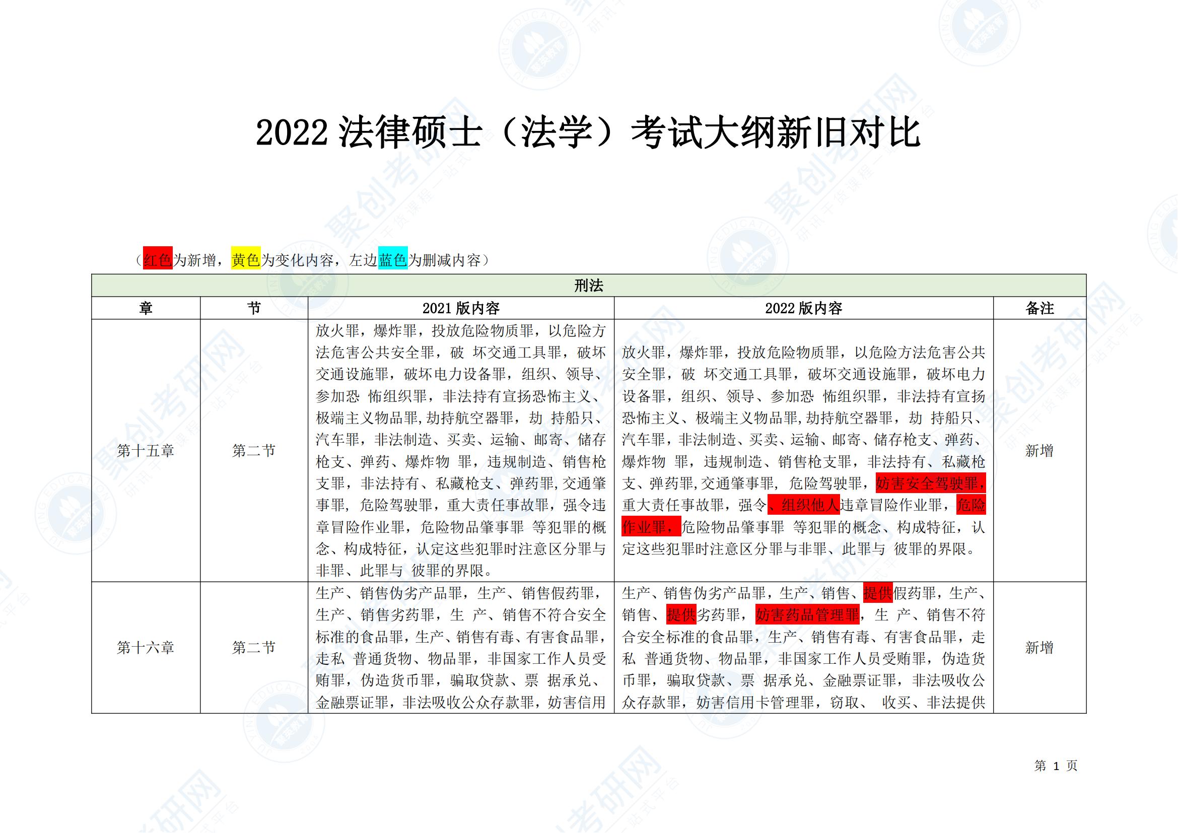 2022年法律硕士考试大纲相较于21年考试大纲发生了一定量的变化,聚创考研信息网为大家整理如下内容: